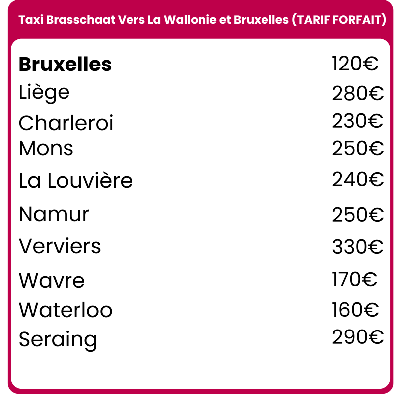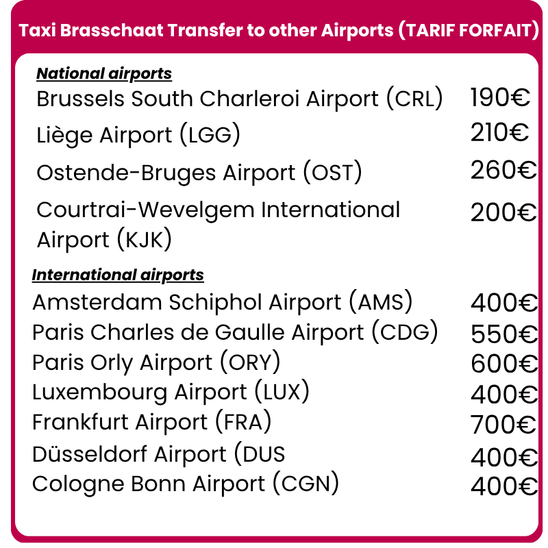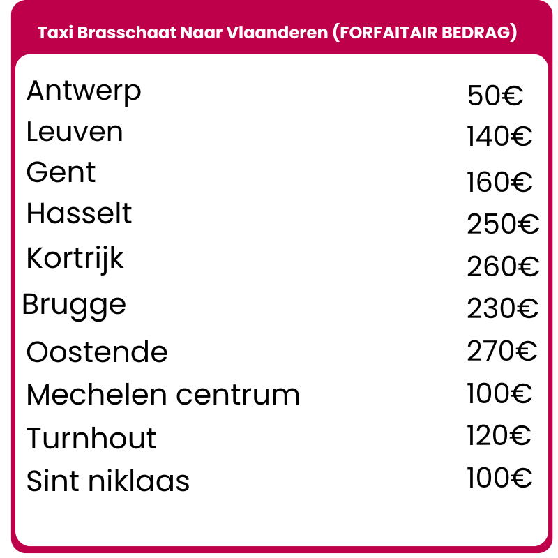 Onze forfaitaire tarieven zijn berekend vanaf het stadscentrum van de vermelde bestemming.